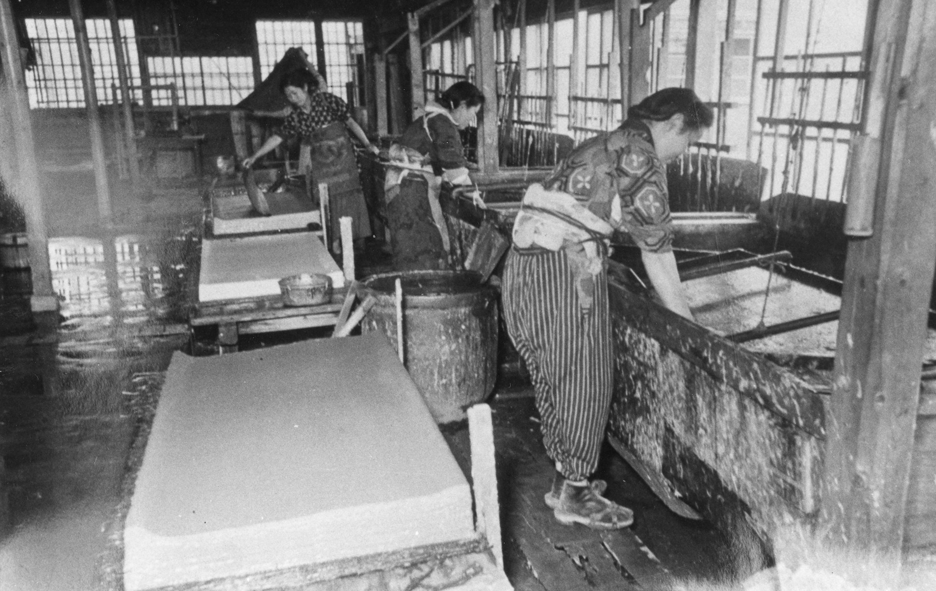 洋紙の原料であるパルプも使いながら、はがきや色紙、賞状用紙など、厚い和紙を作ります。