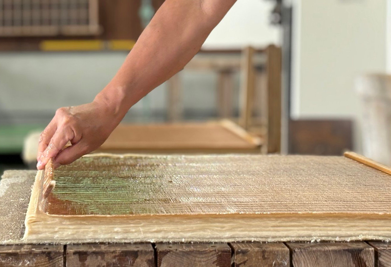 主に楮を原料に流して薄い和紙を作る。昔ながらの伝統の技法で、様々な和紙が作られていますが、その中でも最も高級なものが細川紙です。